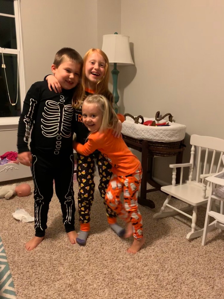 • Surprising the kids with Halloween pajamas!  I used to buy my kids festive clothes or pj’s but I wouldn’t always make a big deal out of it.  I would pull it out of the bag randomly to show them or simply fold it and put it in their drawers.  Until I realized…ITS ALL ABOUT THE DELIVERY.  This year I set them aside for when we got home from the pumpkin patch and surprised them.  I forewarned them that the surprise was not eatable or a toy πŸ˜‰ and then made them sit with their eyes closed until I placed the PJs in their hands.  The anticipation is the best part!  My kids went crazy over the new pajamas. I love these from amazon and I found these skeleton pajamas from Target and they glow in the dark.  I bought them for all 3 of mine so their skeletons can chase each other around at night!